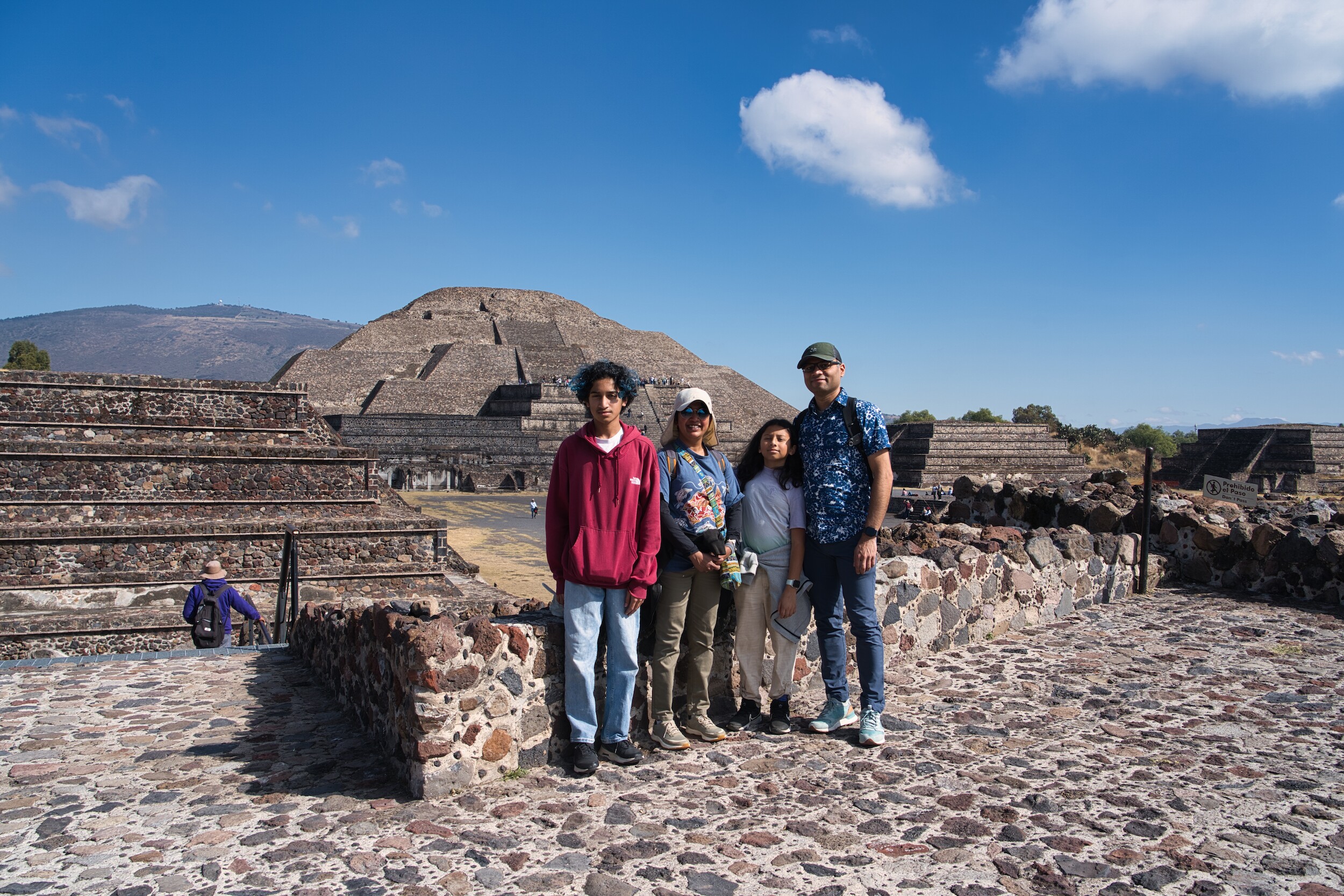 We visited the Teotihuacán Archeological Site. An early morning start, timed to catch the first entry into the historical site, meant that we left the city at 7.30 AM, and were allowed into the historic site around 9.30 am. We spent the day touring the pyramids, with our guide Frank telling us about the history of the site.