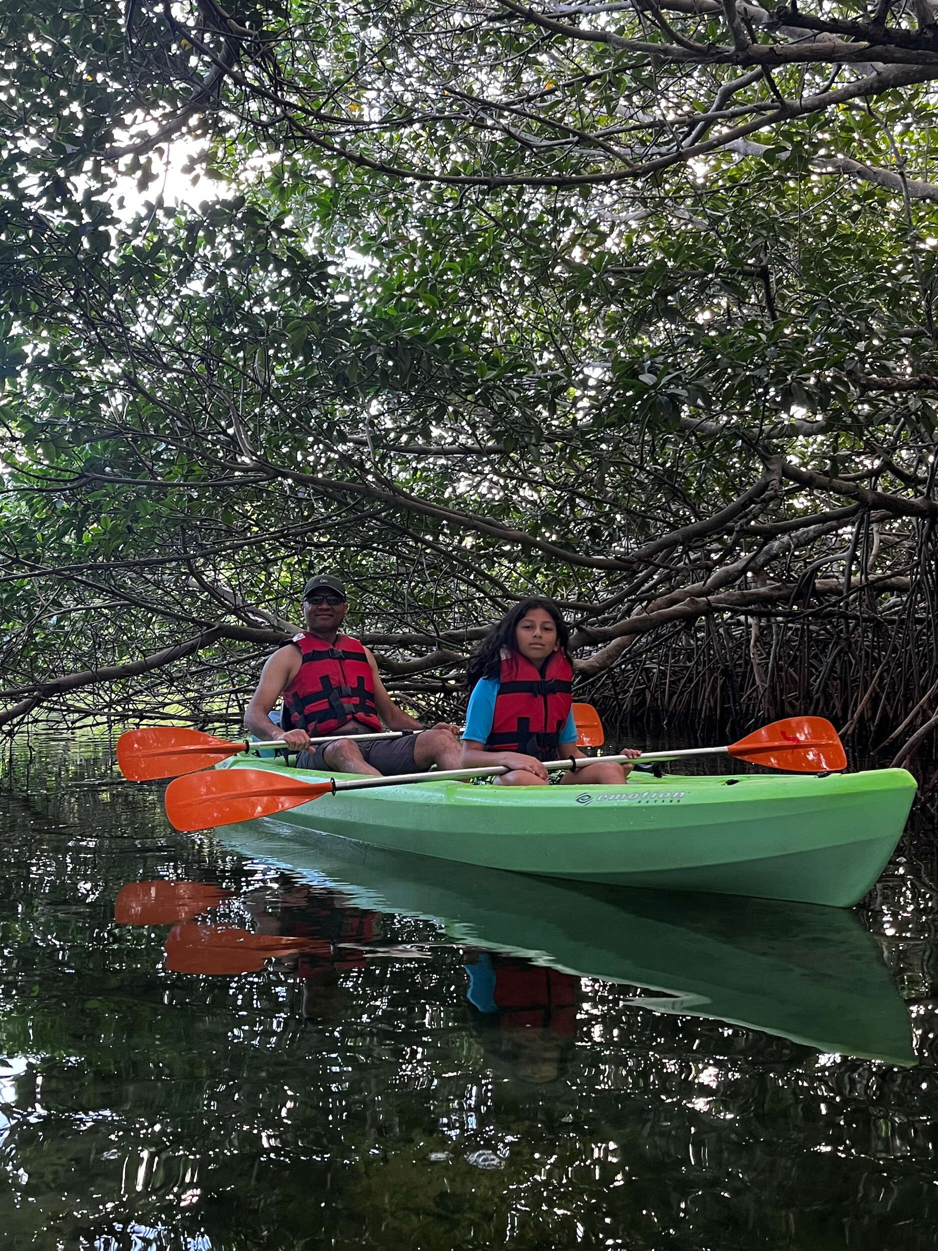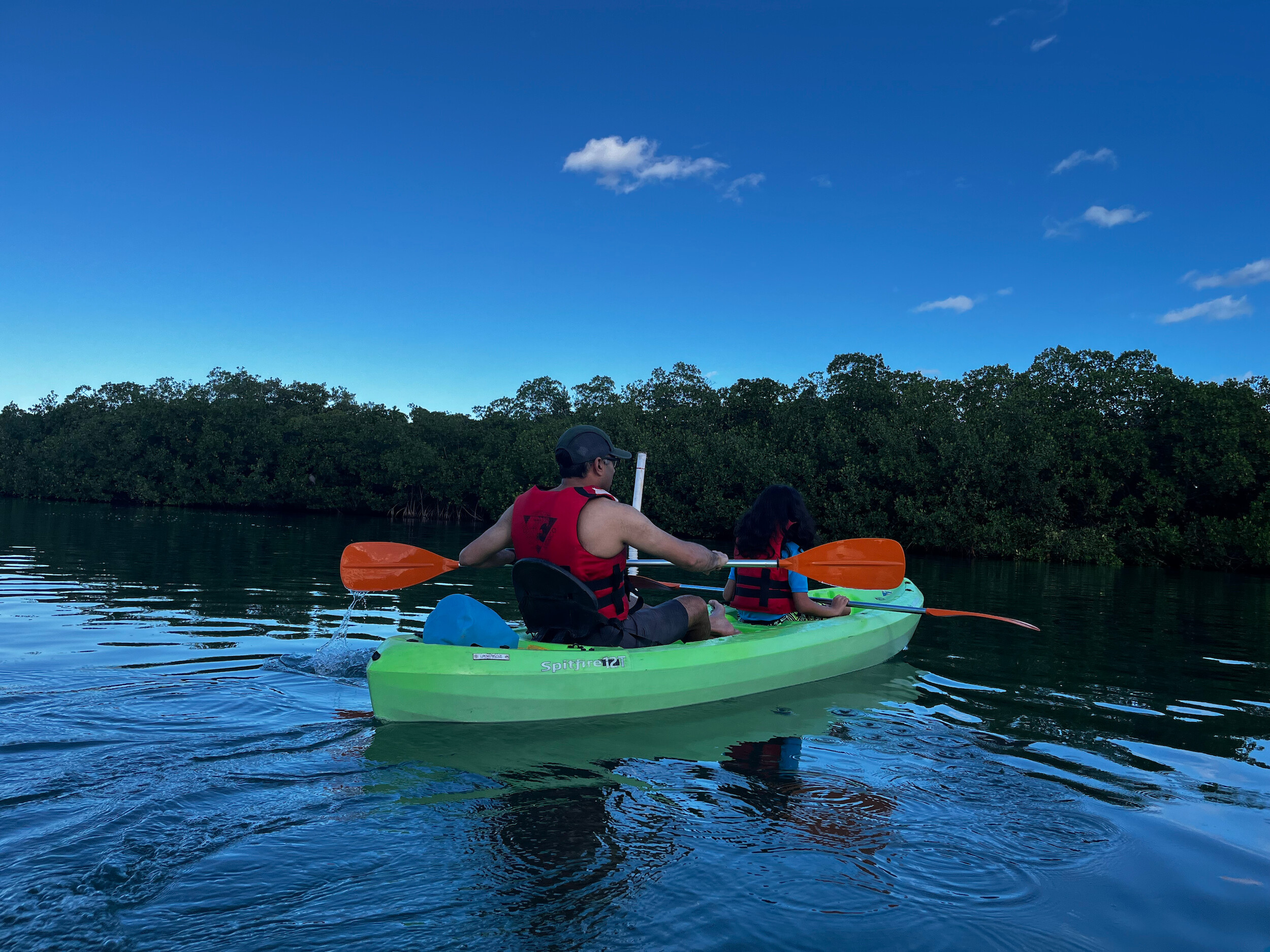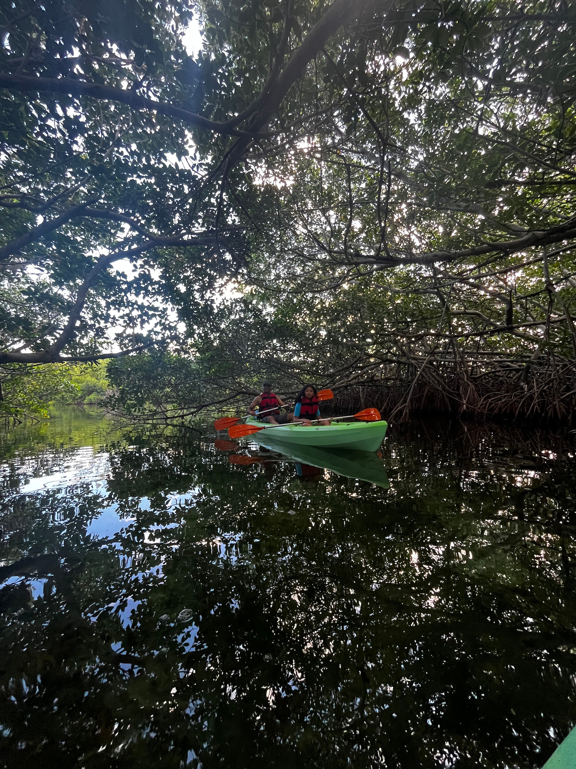 Tejas and I wanted one last adventure, so we took an early morning kayak trip through the mangroves, hoping to spot some wildlife. We saw schools of tiny fish jumping out of the water, and some local birds, but not much else. A nice relaxing cruise around the lagoon. On our return, we packed up and headed to the airport to catch our flight home.