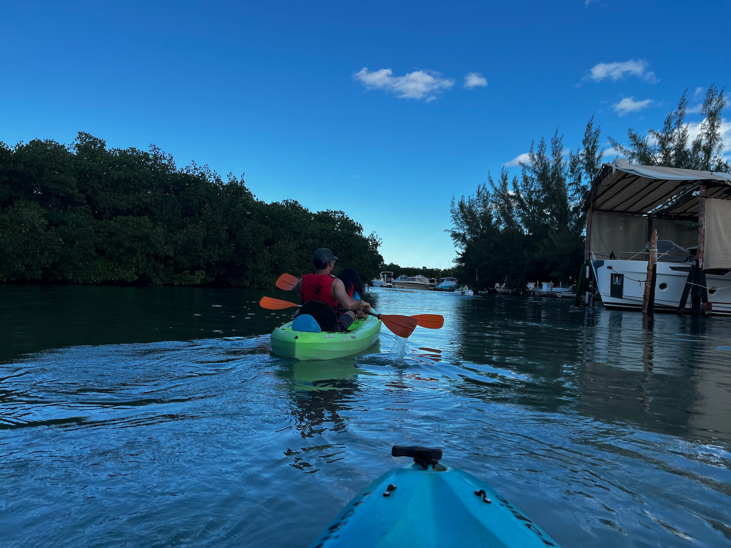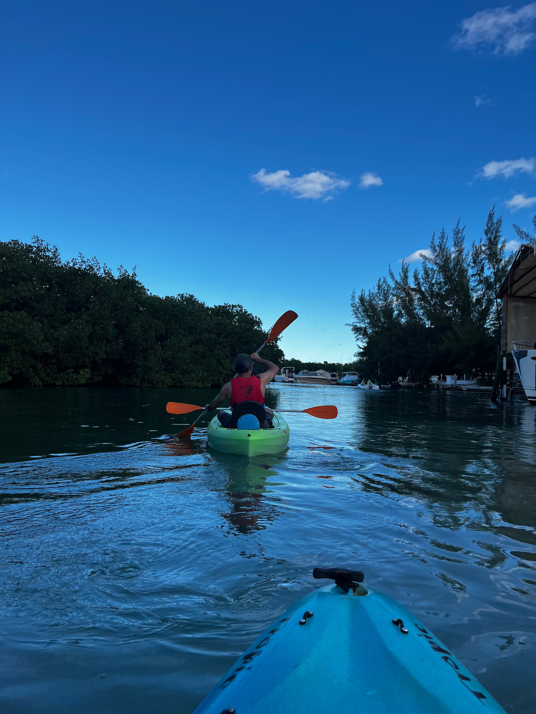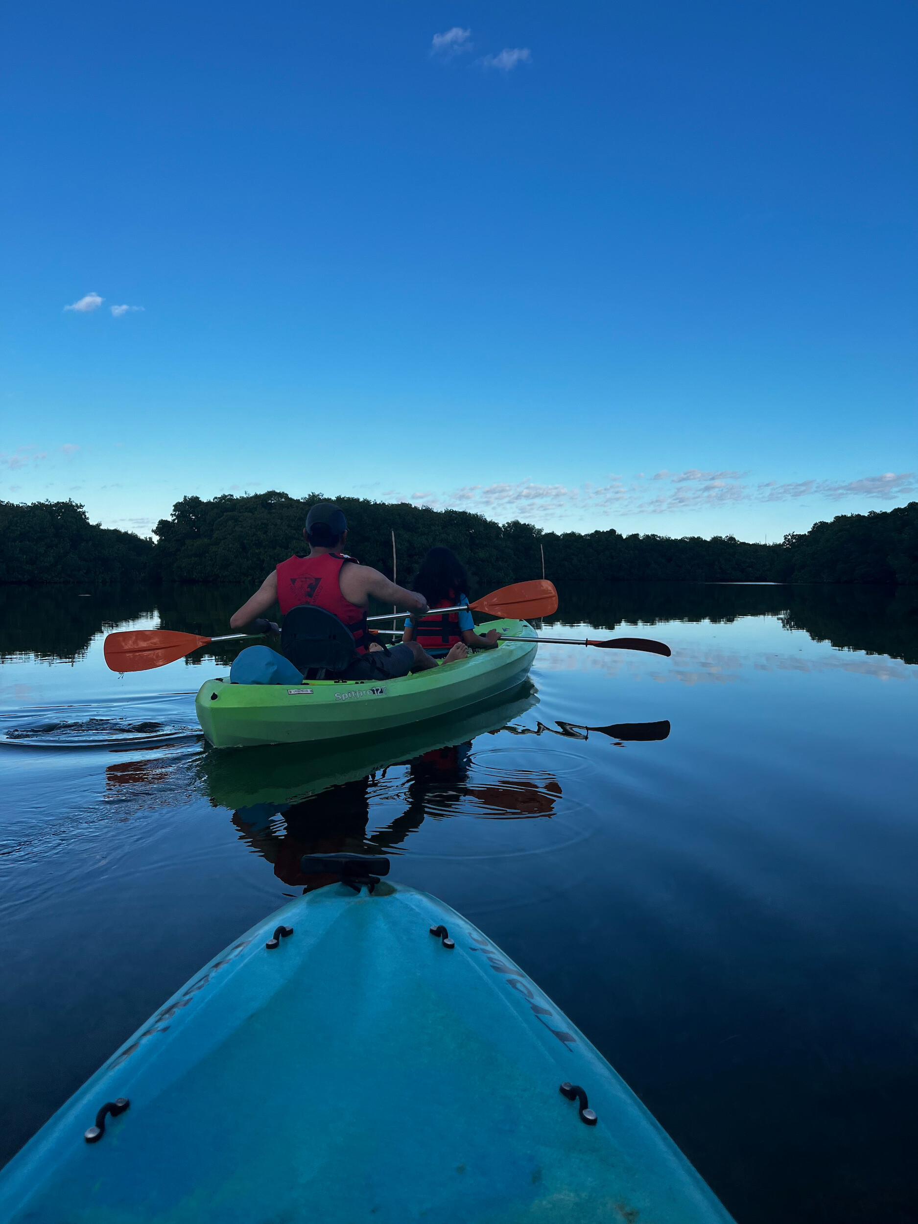 Tejas and I wanted one last adventure, so we took an early morning kayak trip through the mangroves, hoping to spot some wildlife. We saw schools of tiny fish jumping out of the water, and some local birds, but not much else. A nice relaxing cruise around the lagoon. On our return, we packed up and headed to the airport to catch our flight home.
